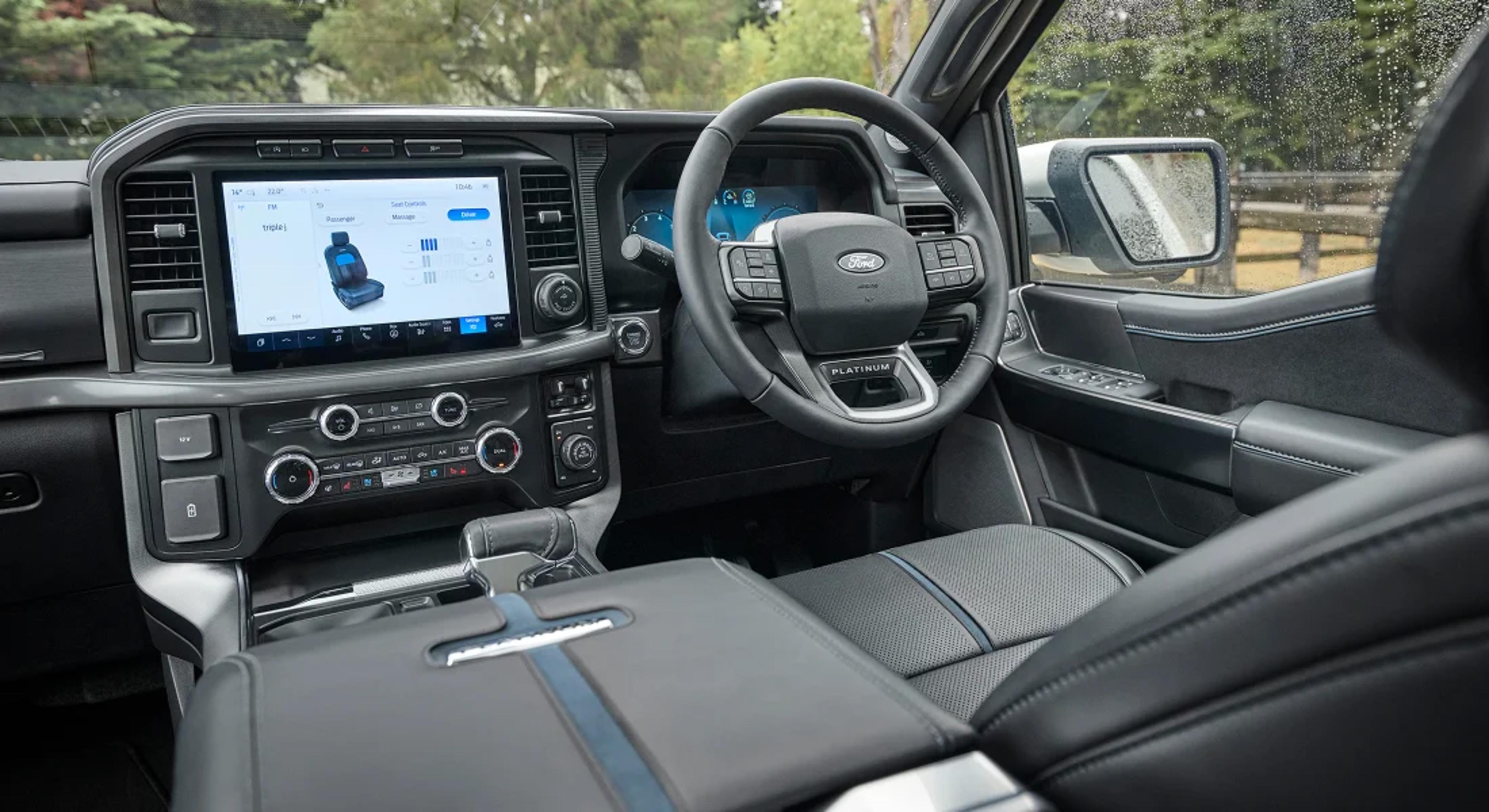Where toughness meets luxury, F-150 Platinum raises the bar with a Gloss Black grille, wheel accents and LED projector headlamps for a sharper, more commanding look.At the rear, a Pro Access Tailgate adds serious versatility. Fold it down like a traditional tailgate or swing it out 100-degrees for easier access to the tub, even when hitched to a trailer. Inside, multi-level massage seats recline near-flat1 to help you get a well-earned rest. Proof that even Built Ford Tough can take it easy.